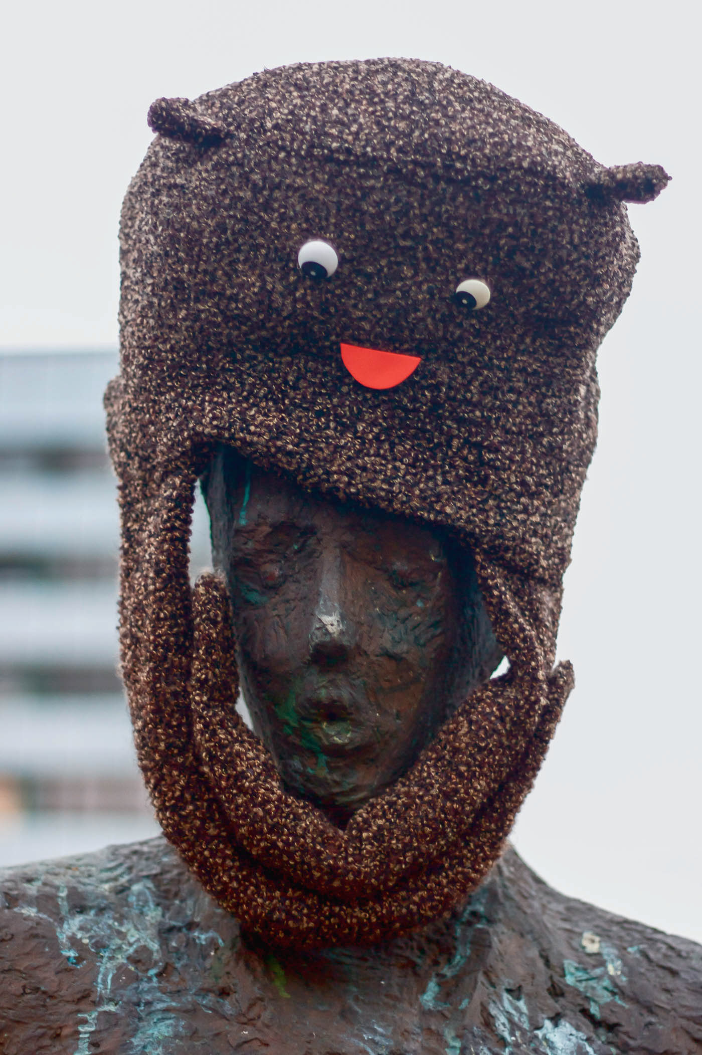 This hat offered warmth and empathy to the statues and people of Pori during the cold winter.